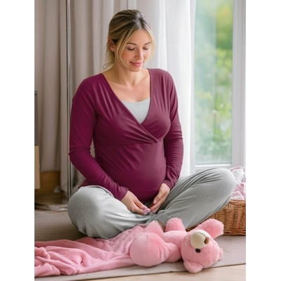 Jožánek pyžamo pro těhotné a kojicí dlouhé cyklámen šedý melír