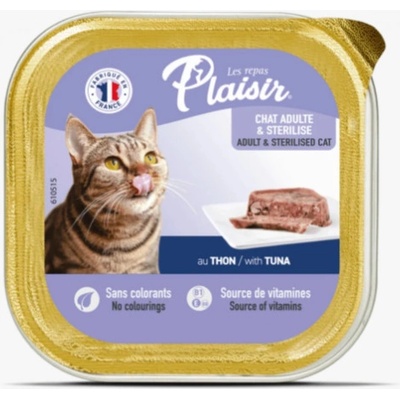 Plaisir cat VANIČKA s tuňákem 100g Lahodná paštika Les Repas Plaisir s tuňákem obsahuje 50 % masa a živočišných produktů pro dospělé i sterilizované kočky Složení: Maso a...