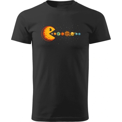 Vtipné pánské tričko - Pacman Planets Vtipné bavlněné tričko s parodovaným motivem Pacmana, který požírá celou sluneční soustavu. Materiál: 100% bavlna (160 g/m2) - tubulární...