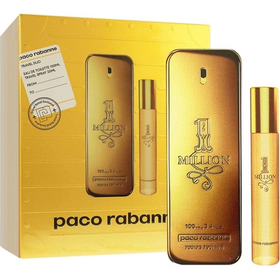 1 Million Dárková sada obsahuje - toaletní vodu 1 Million EDT 100 ml - toaletní vodu 1 Million EDT 20 ml, vše v dárkovém balení Paco Rabanne. Velmi exkluzivní pánská vůně sladšího ražení a jemně svěžím dojezdem. Složení Hlava - máta, grapefruit, červený...