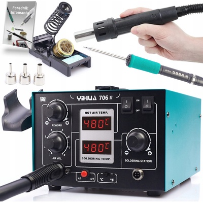 Sada Profesionální pájecí stanice 2v1 Hot-Air + systém T12 Yihua 706 II + sada příslušenství Komplexní pájecí sada obsahuje pájecí stanici s nastavitelnou teplotou, 328...