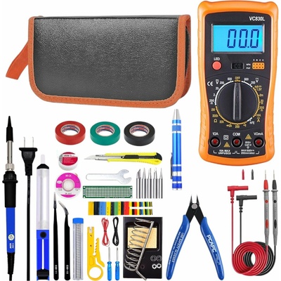 Velká sada elektrických nástrojů s páječkou a multimetrem E6180 Praktická sada elektronických doplňků. Všechny prvky jsou zabaleny v pouzdře, které usnadňuje přenášení a...