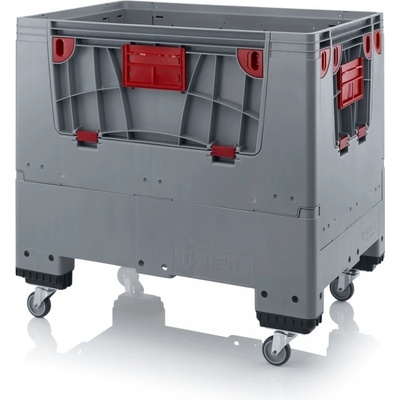 Stohovatelný paletový box 1200 x 1000 x 790 s plnými stěnami a 4 nožkami nebo ližinami. Nosnost: Statické zatížení: max. 1200 kg Dynamické zatížení: max. 600 kg Varianta na nožkách může být doplněna o kolečka.
