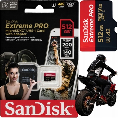 Paměťová karta SANDISK EXTREME microSDXC 512 GB 190/130 MB/s UHS-I U3. Užijte si bleskový přenos dat s paměťovou kartou SanDisk. Produkt čte soubory rychlostí až 190 MB/s a...
