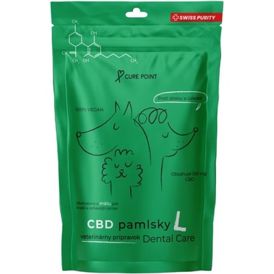 Cure Point CBD Dental Care L Veterinární doplňkové krmivo s CBD pro psy velkých plemen (nad 35 kg). Pamlsky jsou 100 % veganské a z prémiových surovin. Krmivo díky svému...