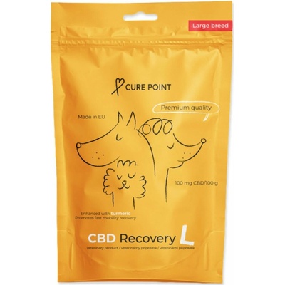 Cure Point CBD Recovery L Veterinární doplňkové krmivo s CBD pro psy velkých plemen (nad 35 kg). Pamlsky jsou 100 % veganské a z prémiových surovin. Krmivo díky svému...