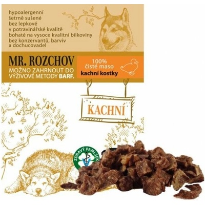 VOŇAVÉ A ZDRAVÉ 100% KACHNÍ MASO šetrně sušené vzduchemVýživová metoda BARF hypoalergenní, bezlepkové, v potravinářské kvalitěSušené 100% kachní maso...