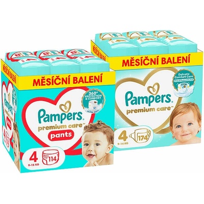 Plenkové kalhotky Pampers Premium care 4 Pants , 114ks, 9-15kg Nejlepší pohodlí a ochrana od Pampers díky super hebkým a pružným materiálům. - 360° ochrana a pohodlí - Super hebké a pružné materiály se přizpůsobují tělíčku vašeho děťátka a pomáhají tak předcházet...