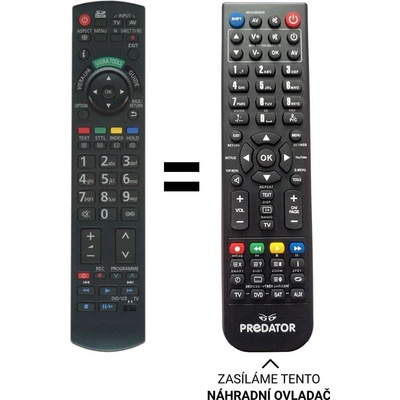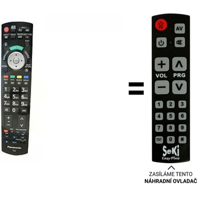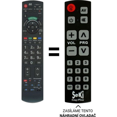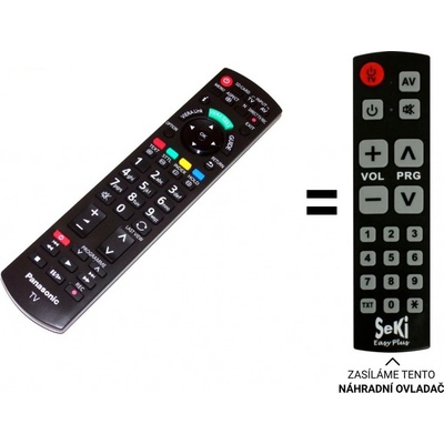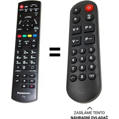Panasonic náhradní dálkový ovladač BEZ NUTNOSTI PROGRAMOVÁNÍ. . Například pro modely: TX-L32E5B, TX-L32E5E, TX-L32E5Y, TX-L37E5B, TX-L37E5E, TX-L37E5Y, TX-L37EW5, TX-L42E5B,...