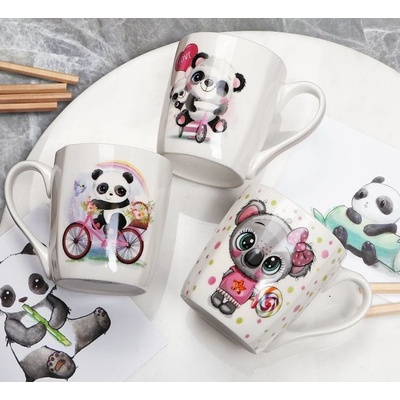 Porcelánový hrnek objem 300ml, dětský dekor PANDA, 3dekory, výška 9cm, průměr 8cm.