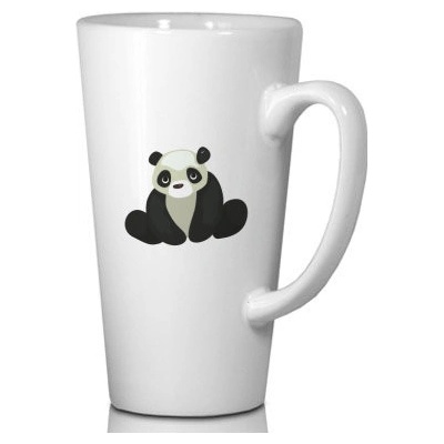 Keramický hrnek s pandou. Hrníček panda je bílé barvy a ve tvaru hlavy pandy. Ucho je bílé barvy. Hrnek je ve stylu vzhůru nohama, kdy se z něj pije tak, že pandu je nutné...
