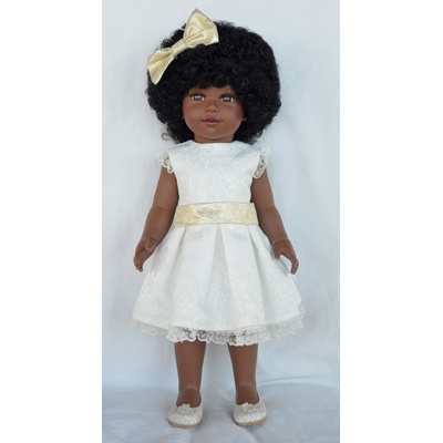 Krásná černoška Coral ve zlatých střevíčkách je realistická panenka od firmy Vestida de Azul ze Španělska. Měří 45 cm a celé tělíčko má vyrobené z vinylu. Coral má černé krátké...