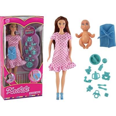 Dívka těhotná se sadou příslušenství. Velikost 29 cm. Obsah balení - panenka, doplňky, miminko.> Panenka těhotná s příslušenstvím set. Velikost 29 cm. Obsah balení - panenka,...