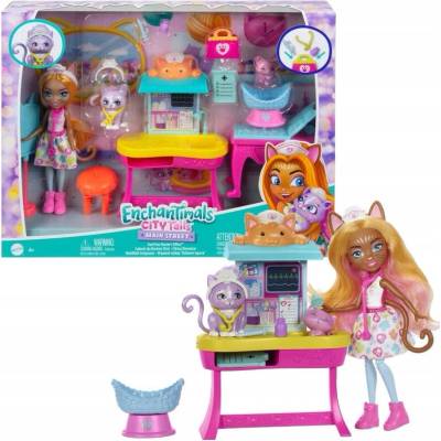 Enchantimals KLINIKA ZDRAVÍ VETERINÁŘ KOČKA NÁVŠTĚVA U LÉKAŘE FIGURKYMagická návštěva lékaře Přeneste se do světa Enchantimals se sadou Návštěva lékaře. Připojte se k Dr....