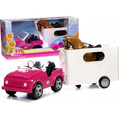 Krásně zpracované auto pro panenky s přívěsem a koněm, vhodné jako doplněk pro panenky o velikosti Barbie. Velikostně vhodné pro Barbie Koník má česací hřívu a ocas Hřeben...