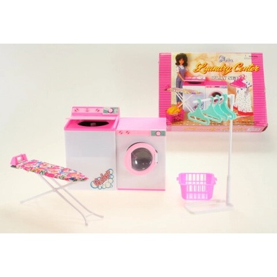 Zábavná a detailní prádelní sada pro panenky GLORIE přináší vše potřebné pro hraní na domácnost: pračka a sušička s otevíracími víky, žehlicí prkno s žehličkou, stojan s ramínky...