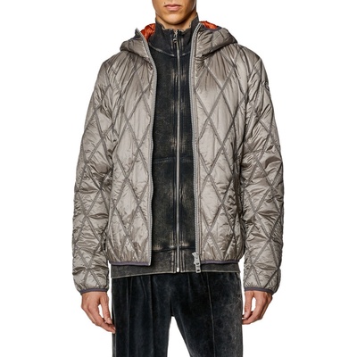 Pánská přechodová bunda. Nepřehlédnutelný design tvořený metalicky lesklým povrchem. Zdobena vertikálním potiskem maxi loga Diesel For Successful Living umístěného na přední i...