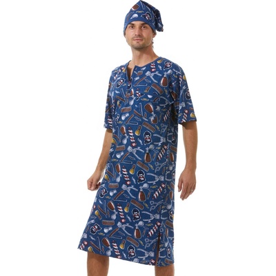 Pánská noční košile, s dlouhým rukávem a čepičkou na spaní Barber. Bavlněná pánská noční košile, celovzorována motivy z pánského salonu - Holič. Dlouhý rukáv, na hrudi malá...