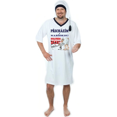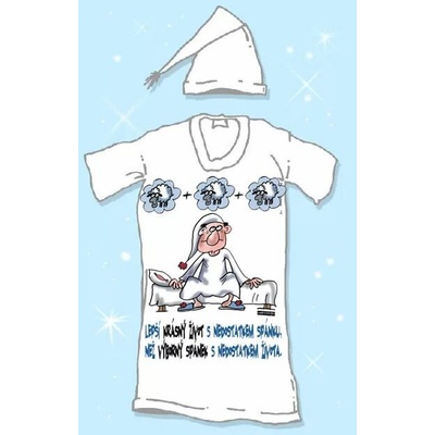 Unisex noční košile s krátkým rukávem univerzálního střihu s noční čepičkou a vtipnými potisky. Rozveselte svého spolunocležníka, vneste do Vaší ložnice krapet humoru! Pohodlná...
