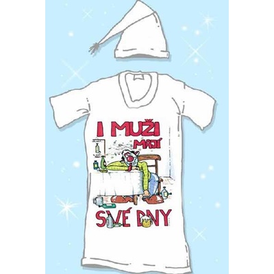 Noční košile I muži mají své dny - velikost L je kvalitní noční košile s čepicí. Na této vtipné a originální noční košili je obrázek opilého chlapíka sedícího za stolem a text...