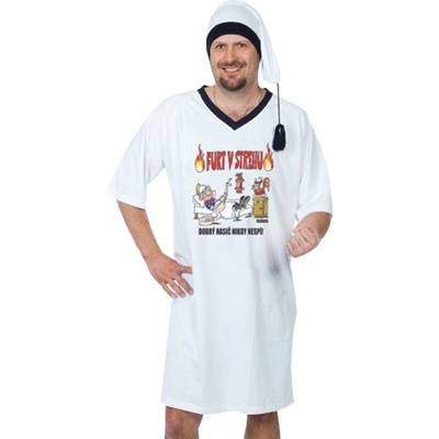 Noční košile pro dobrého hasiče - velikost L je kvalitní noční košile s čepicí vhodná pro ty nejlepší hasiče. Na této vtipné a originální noční košili je obrázek spícího hasiče...