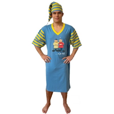 Veselá pánská noční košile s čepicí Pat a Mat s motivem klasického gesta. Pánská noční košile je vyrobena z velmi příjemné 100% bavlny 180g. Oblíbená pánská noční košile je...