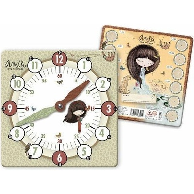 Papírové dětské hodiny na výuku s designem známého děvčátka Anekke z dílny španělské návrhářky. Hodiny obsahují ciferník se zvýrazněnými čísly 3, 6, 9 a 12 také čísla od 1 po 12...