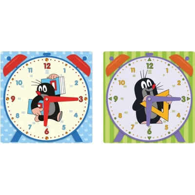 Školní hodiny s motivem Krtka, které slouží k výuce času prvňáčkům základních škol. Velikost 21x21 cm. Vhodné od 3 let.