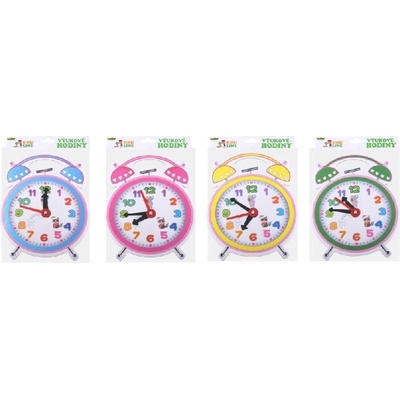 Výukové hodiny papírové budík. 4 různé barevné provedení.