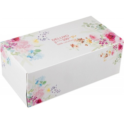 Dvouvrstvé kapesníčky Deluxo jsou jemné, měkké a zároveň pevné, vhodné pro každodenní použití, vyrobeny ze 100% celulózy, rozměry kapesníčku 200 x 190 mm, praktická krabička s...