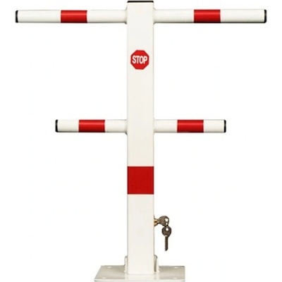 Bílo-červený parkovací sloupek s reflexními pruhy, vyrobený z vysoce kvalitní oceli. Je ozvláštněna čtvercovým, svyslým sloupkem a dvěma vodorovnými příčníky (horizontálními...