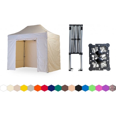 Profesionální skládací stan s nůžkovou konstrukcí, díky které stan velmi snadno a rychle postavíte a opět složíte. Stan Vám poskytne dostatek stínu v parných dnech, ochranu...