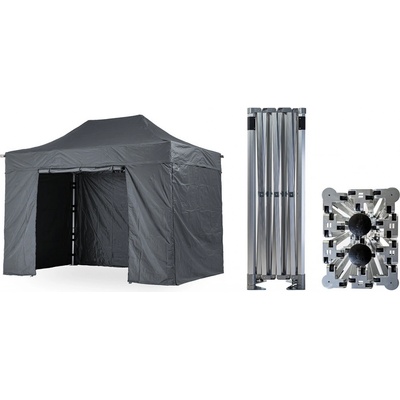 Prodejní stánek s rychleskládající se nůžkovou konstrukcí, vybavený třemi postranními odnímatelnými panely, připevněnými suchým zipem a třístupňovou možností regulaci jeho...