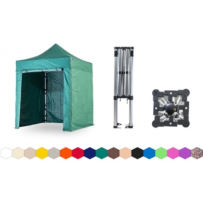 Stanová sada obsahuje 1x konstrukce SMALL HEXAGON hliníková, nylonové spoje 1x střecha + 4x boční plachta – 3x plná, 1x s dveřmi 1x transportní taška na opláštění 4x...