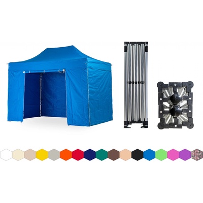 Stanová sada obsahuje 1x konstrukce BIG HEXAGON hliníková, kovové spoje 1x střecha + 4x boční plachta – 3x plná, 1x s dveřmi 1x transportní taška na opláštění 4x...