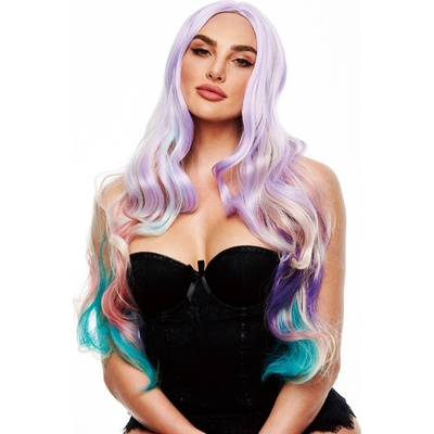 Luxusní paruka Rainbow v duhových barvách. Paruku lze tepelně upravovat - ať už žehlit, nebo vytvářet vlny pomocí kulmy. Pojmy spojené s tímto produktem: dámská paruka, paruka, deluxe, rainbow, duha, doplněk