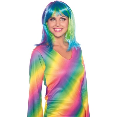 Dámská paruka rainbow, barevná. Výrazná párty paruka. Barva: duhová Materiál: 100% polyester Určeno pro: dámská Typ paruky: krátká