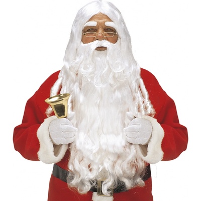 Paruka Santa Claus set s vousy, knírem a obočím krásný set maxi dlouhá paruka s dlouhými vousy, obočím a knírem Santa Claus nebo Mikuláš. Skvělá kadeřavá bílá paruka s vousy a nalepovacím obočím. Karnevalové doplňky značky Widmann.