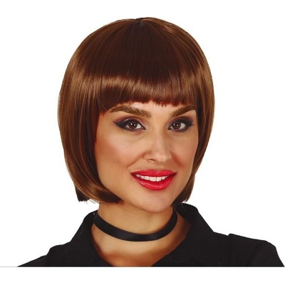 Stylová dámská paruka s elegantním mikádo střihem v hnědé barvě. Ideální pro doplnění kostýmů, cosplay, na tematické večírky, Halloween apod.