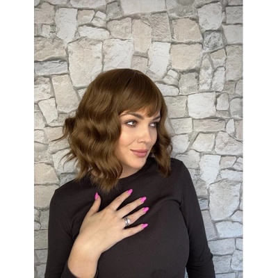 HNĚDÁ MIKÁDO PARUKA OLGA S OFINOU A MELÍRY Krásná hnědá paruka s úžasnou ofinou a decentními blond melíry. Dokonalý vzhled přidává krátký a vlnitý mikádo střih. Je vyrobena z kvalitního syntetického vlákna, velice příjemného na dotek, svou jemností připomíná lidské...