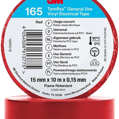 Izolační páska 3M Temflex 165 červené barvy v balení 3 ks slouží jako univerzální vinylová pomůcka k elektroizolaci a je ideální pro široké spektrum prací v interiéru i...