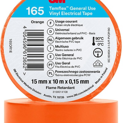 Izolační páska 3M Temflex 165 oranžové barvy v balení 3 ks slouží jako univerzální vinylová pomůcka k elektroizolaci a je ideální pro široké spektrum prací v interiéru i...