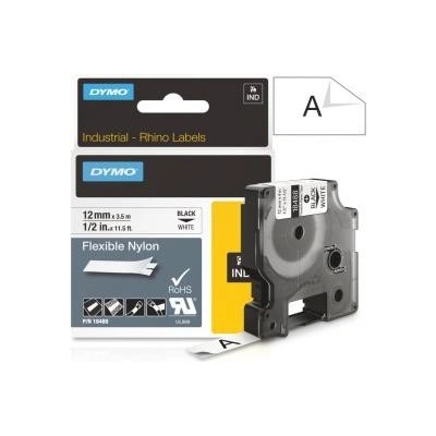 Páska Dymo Rhino (18488), 12mm bílá, černý tisk, 3,5m - permanentní flexibilní nylonová. Ohebné nylonové štítky jsou vhodné pro zakřivené a rovné povrchy; vodiče a kabely,...