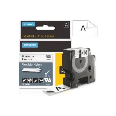 Páska Dymo Rhino (1734524), 24mm bílá, černý tisk, 3,5m - permanentní flexibilní nylonová. Ohebné nylonové štítky jsou vhodné pro zakřivené a rovné povrchy; vodiče a kabely,...