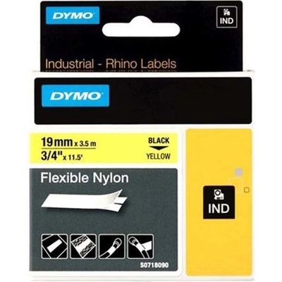 Dymo originální páska do tiskárny štítků, Dymo, 18491, černý tisk/žlutý podklad, 3.5mm, 19mmmm, RHINO nylonová flexibilní Speciálně navrženo pro označení drátů a kabelů. Jejich...