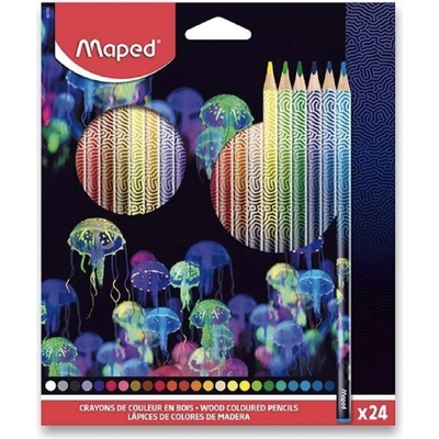 Souprava 24 kusů ergonomických pastelek MAPED Color'Peps v černém provedení s motivy příšerek. odolná tuha trojhranné tělo snadné ořezávání jasné barvy Tloušťka...