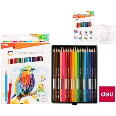 • 18 barev • ergonomické trojhranné tělo • hladké dřevo • snadno se ořezává • syté barvy • kvalitní tuha pro hladké kreslení • ořezané