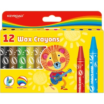 Voskové pastely. 12 zářivých barev. Měkké a hladké kreslení s voskovkami o průměru 14mm a délce 105mm. Dodávané v papírové krabičce.
