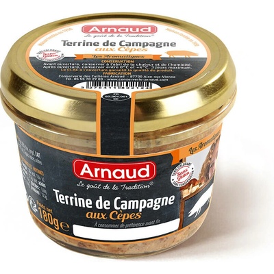Terina z vepřového masa s voňavými hříbky. Složení: vepřové 70% (sádlo, krkovice, játra), voda, kuřecí maso, koňak 2%, sůl, MLÉČNÉ bílkoviny, MLÉKO, VEJCE, koření. Bez barviv,...