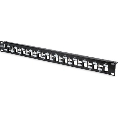 DIGITUS 24portový prázdný patchpanel pro montáž do 19" racku (483 mm) Vhodný pro AWG 22-26 (drát/vodič); Vyrobeno z ocelového plechu válcovaného za studena o tloušťce 1,5 mm...